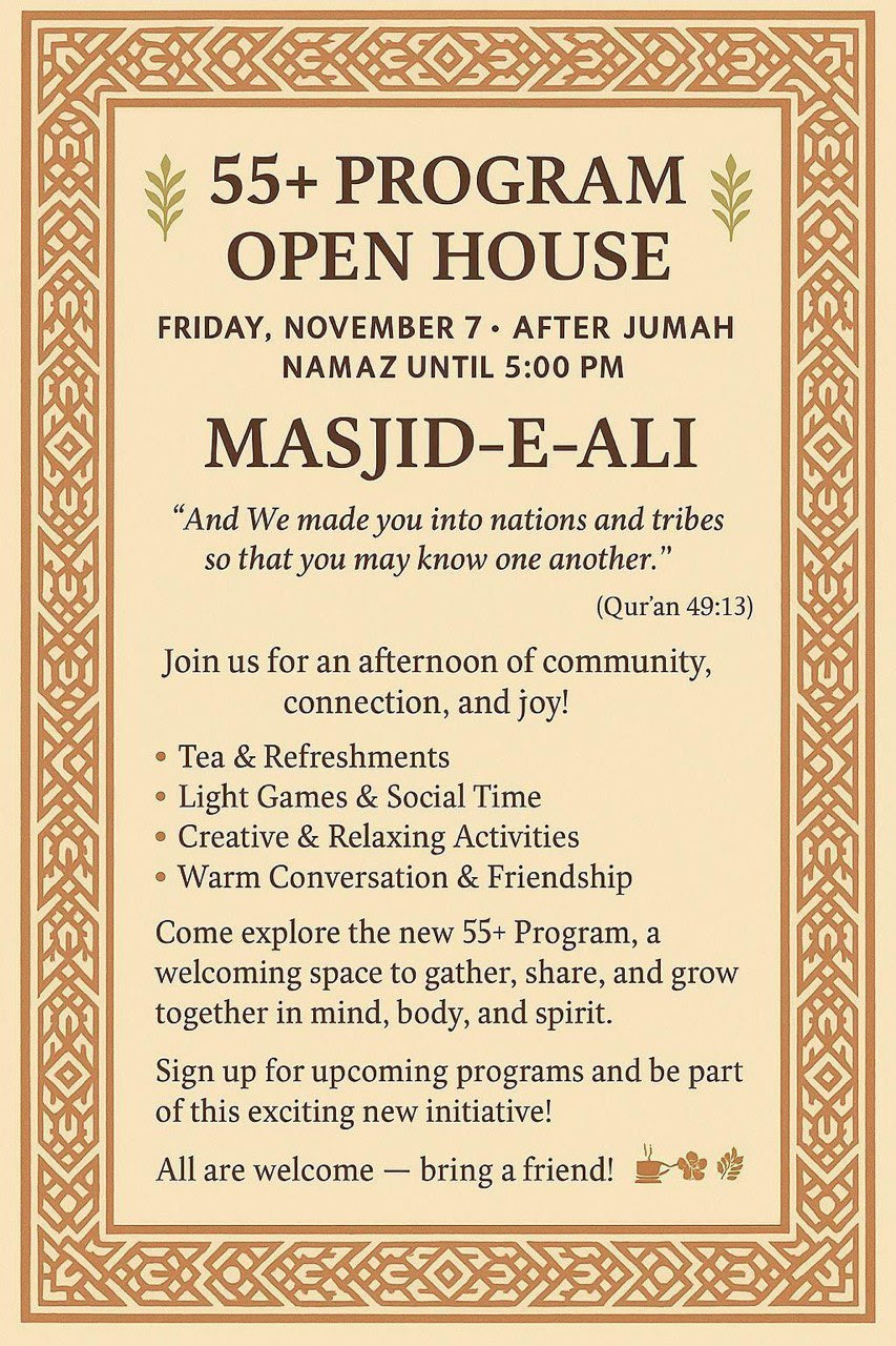 You must be fully vaccinated to attend in-Person programs, only exception is children 12 years or younger, others are recommended to stay home and join us virtually. All programs will broadcast on Masjid-e-Ali (a) YouTube Channel.